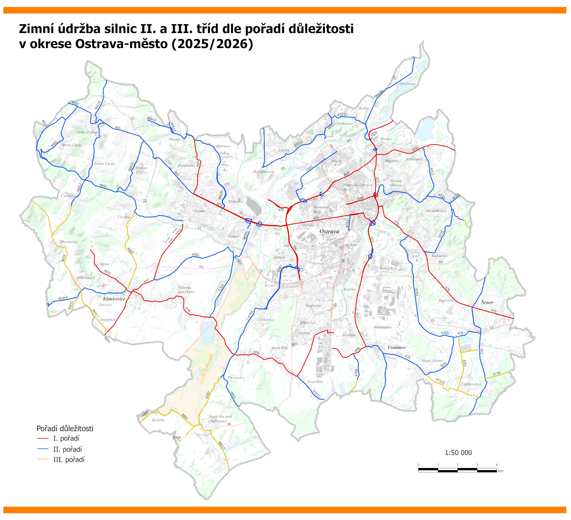 - Správa silnic Moravskoslezského kraje, p. o. zajišťuje zimní údržbu v tomto rozsahu: